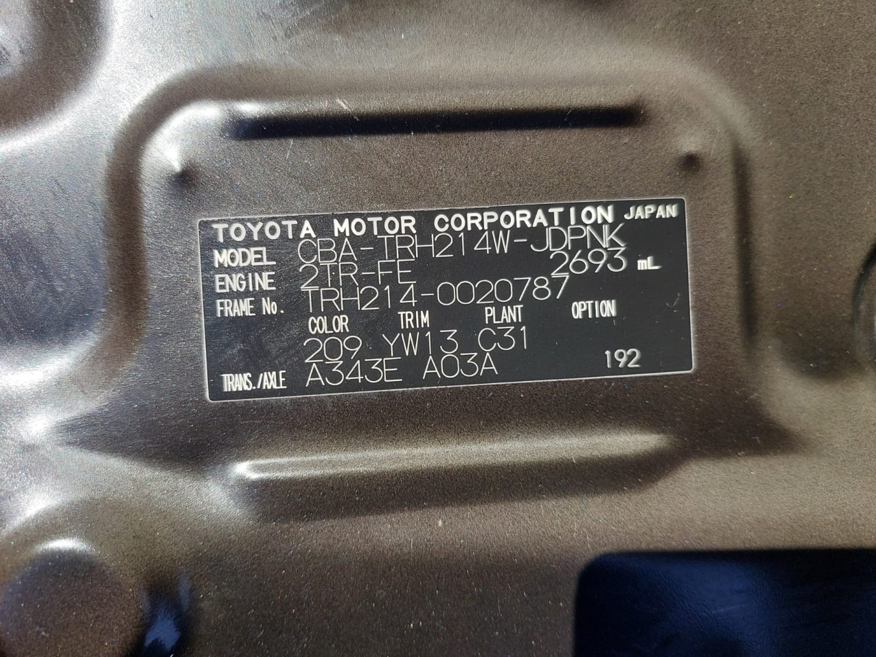 | Chassis # | TRH214-0020787 | Mileage | 176800 (km) |