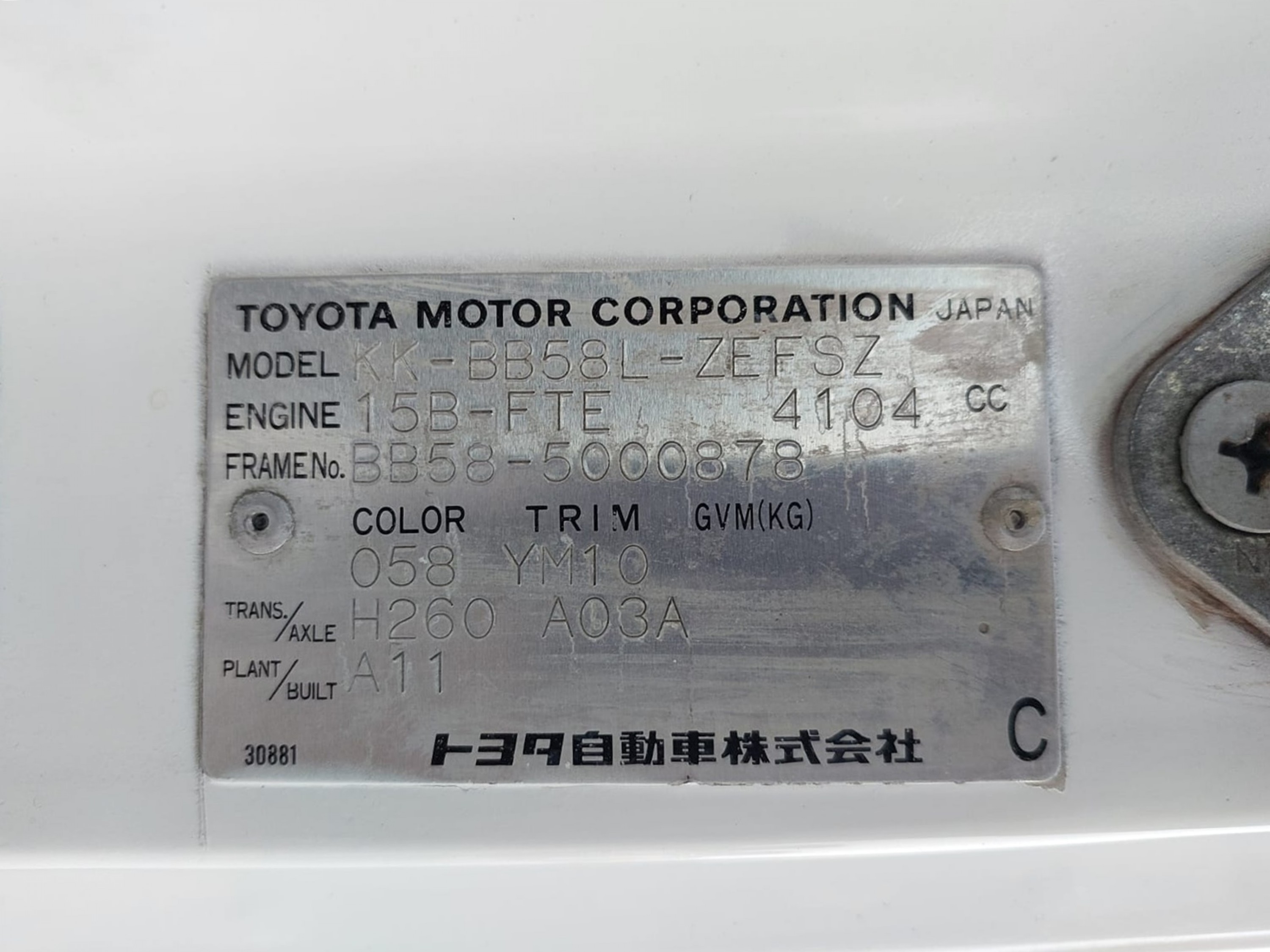 | Chassis # | BB58-5000878 | Mileage | 275800 (km) |